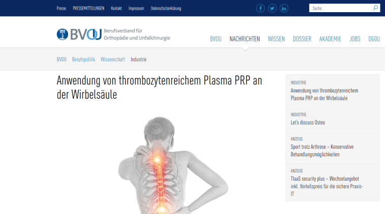 in der neuesten Ausgabe der Sportärztezeitung über bioregenerative Behandlungsmethoden an der Wirbelsäule.